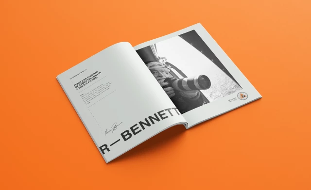 Copy echoed his drive and bravery; visual design reflected his reputation and the means and methods used to achieve shots like no other.