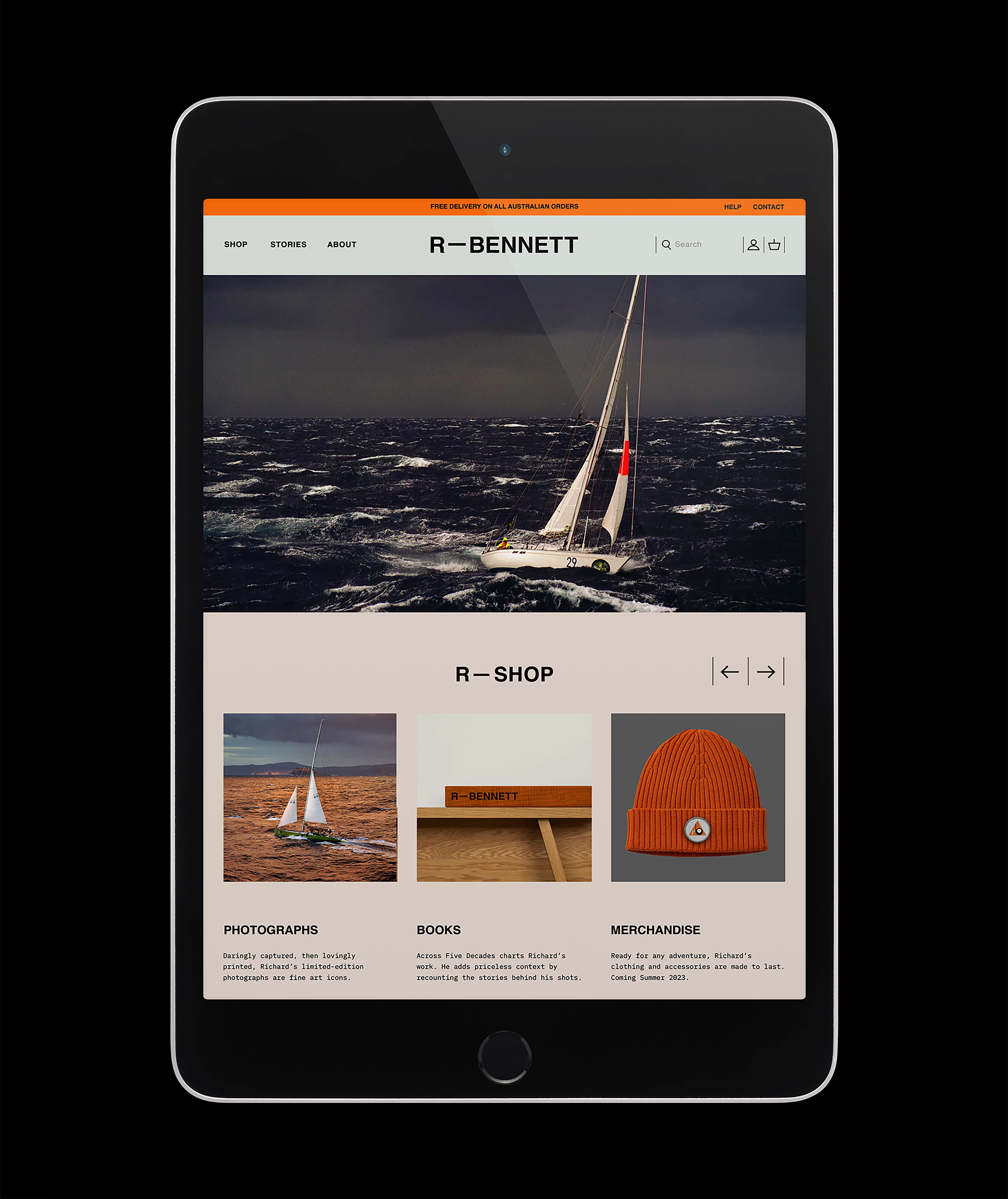 An iconic identity, brand narrative and e-commerce website design for a legendary Australian photographer.